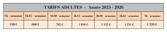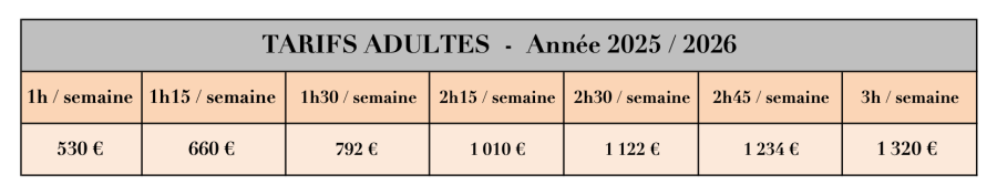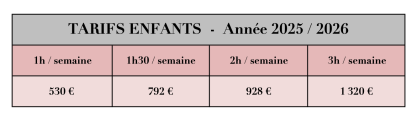 Le tarif de l'inscription annuelle varie cependant en fonction du nombre d'heure que l'élève suivra chaque semaine.